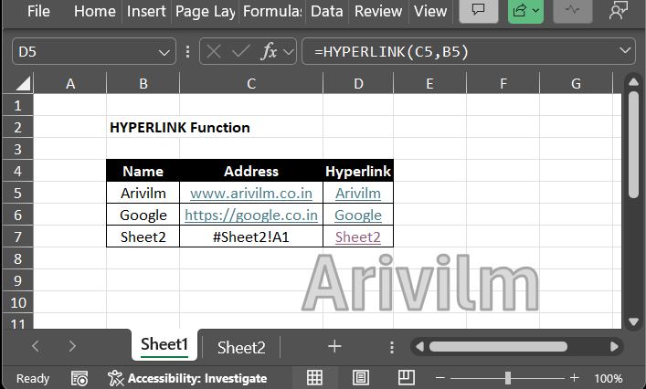 Hyperlink Function Examples